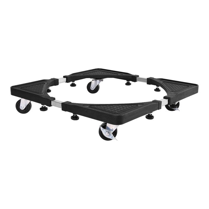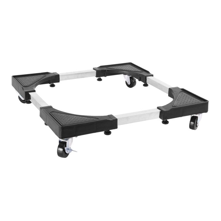 The new WMS-01S Adjustable & Moveable Support Base is suitable for household appliances from size of 40*40cm to size of 60*60cm, by horizontally adjusting the length of 4 adjustable stands. The support base is made of stainless steel tube (15*15cm) and plastic, which can hold house appliances up to 120kg/264lbs. Four 360 degree rotating wheels provides easy mobility when moving the house appliances for different purposes, and the brake locks to keep the house appliances in place for regular use.